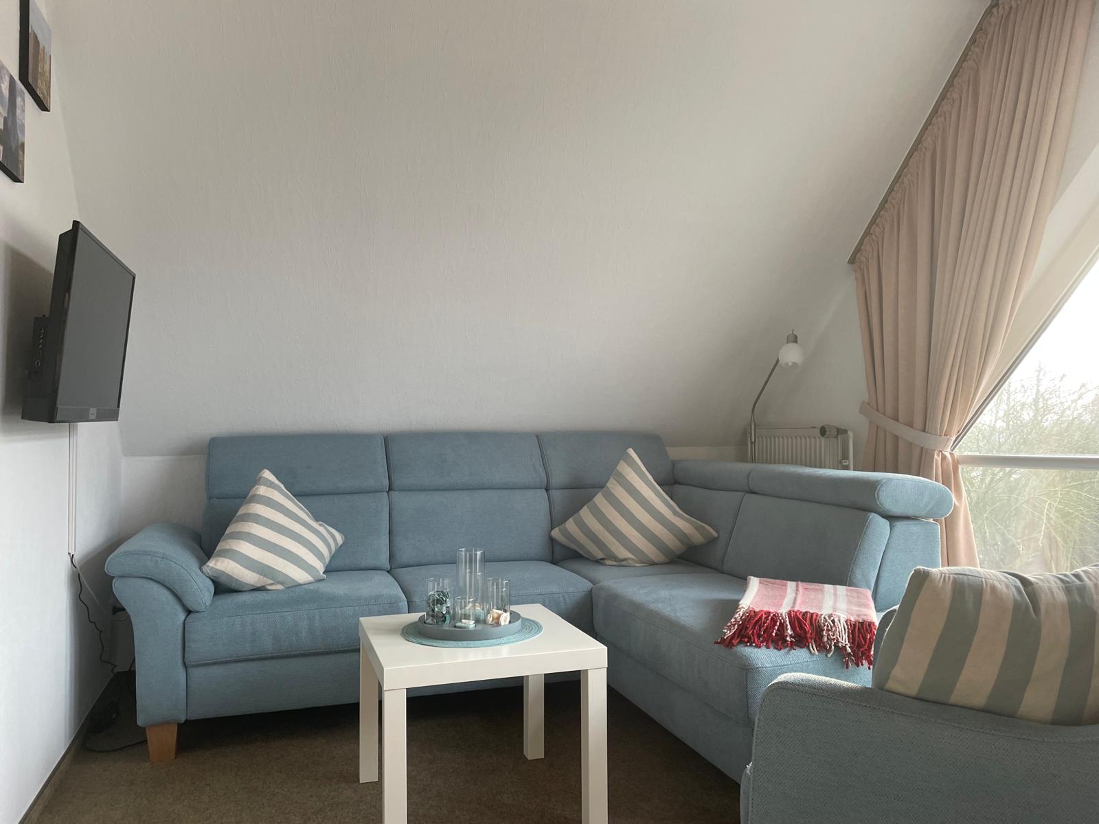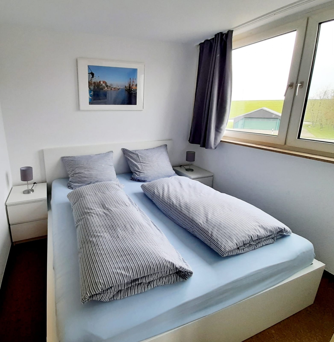 Die Ferienwohnung 2 im 1. OG unseres Ferienhauses ist für 2 bis 4 Personen geeignet und hat einen einladenden Wohnraum mit großen Giebelfenstern. Sie hat eine Größe von ca. 50 m2 und verfügt über ein Wohnzimmer mit Essplatz und einer Kochnische, zwei Schlafzimmer sowie Dusche und ein separates WC.